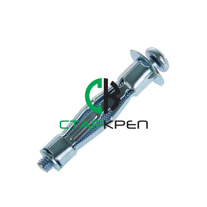 Дюбель Молли для пустотелых конструкций с винтом используется для крепления картин, люстр, полок, карнизов для штор к листовым строительным материалам, потолочным перекрытиям и кладке с крупными полостями. Дюбель Молли Предназначен для гипсокартона, гипсовых волокнистых плит, ДСП, фиброцементных плит, жестковолокнистых плит, армированных пустотелых перекрытий и др.