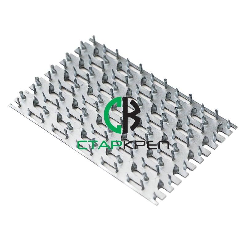 Гвоздевая пластина представляет собой пластину из металла, на рабочей части которой находятся острые зубья. Зубья выполняют функцию гвоздей.Гвоздевая пластина предназначена для крепкого соединения нескольких элементов деревянных конструкций в одной плоскости. Пластину часто используют при возведении каркасных сооружений из древесины и установке стропильных систем.
